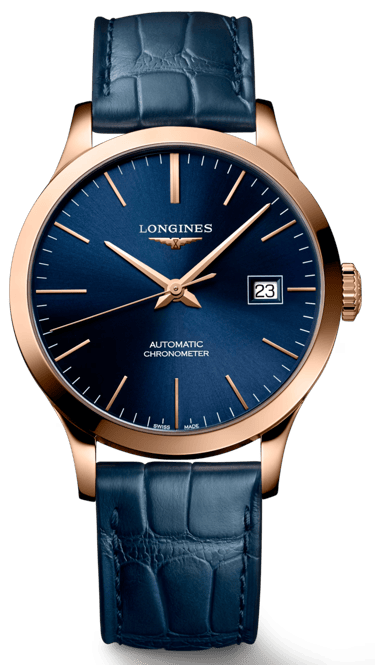 Mẫu L2.820.8.92.2 nổi bật với vỏ vàng hồng 18K đường kính 40mm, kết hợp mặt số xanh chải tia tạo chiều sâu thị giác đầy cuốn hút. Bộ kim dauphine và cọc số thanh mảnh được hoàn thiện tỉ mỉ, thể hiện sự thanh lịch đặc trưng của Longines. Bên trong là bộ máy Caliber L888.4 với lò xo cân bằng silicon – công nghệ chống từ ưu việt – cho khả năng hoạt động bền bỉ và chính xác trong nhiều năm.